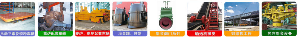 公司產品有ZT系列鐵水罐車、鋼包車、渣罐車、渣盤車、電動平車、過跨車、鐵水稱量車、液壓傾翻車、廢鋼料籃車、中間罐車、修爐車、爐底車、鎳鐵礦熱爐料罐車、汽運鐵水車以及各種鐵水罐(包)、鋼水包(罐)、渣罐、渣盤、中間罐、鋼包加蓋、龍門吊鉤、鋼包傾翻機、鋼包回轉臺等產品。